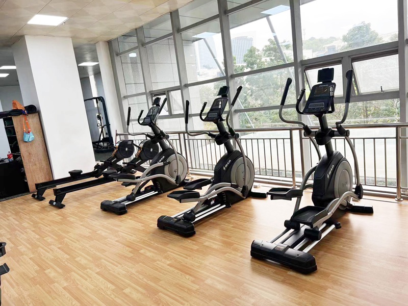 企事业单位健身房面积约为240平方,在接到客户项目需求时,我们根据客户的需求及预算,从装修布局、科学分区、合理的器材搭配等方面,为其提供了一站式健身解决方案。有氧区域配置haobotiyu-好博V9跑步机、X5跑步机,X5-E智能椭圆机、动感单车、划船器等有氧训练器材,有效锻炼提升人体心肺功能。