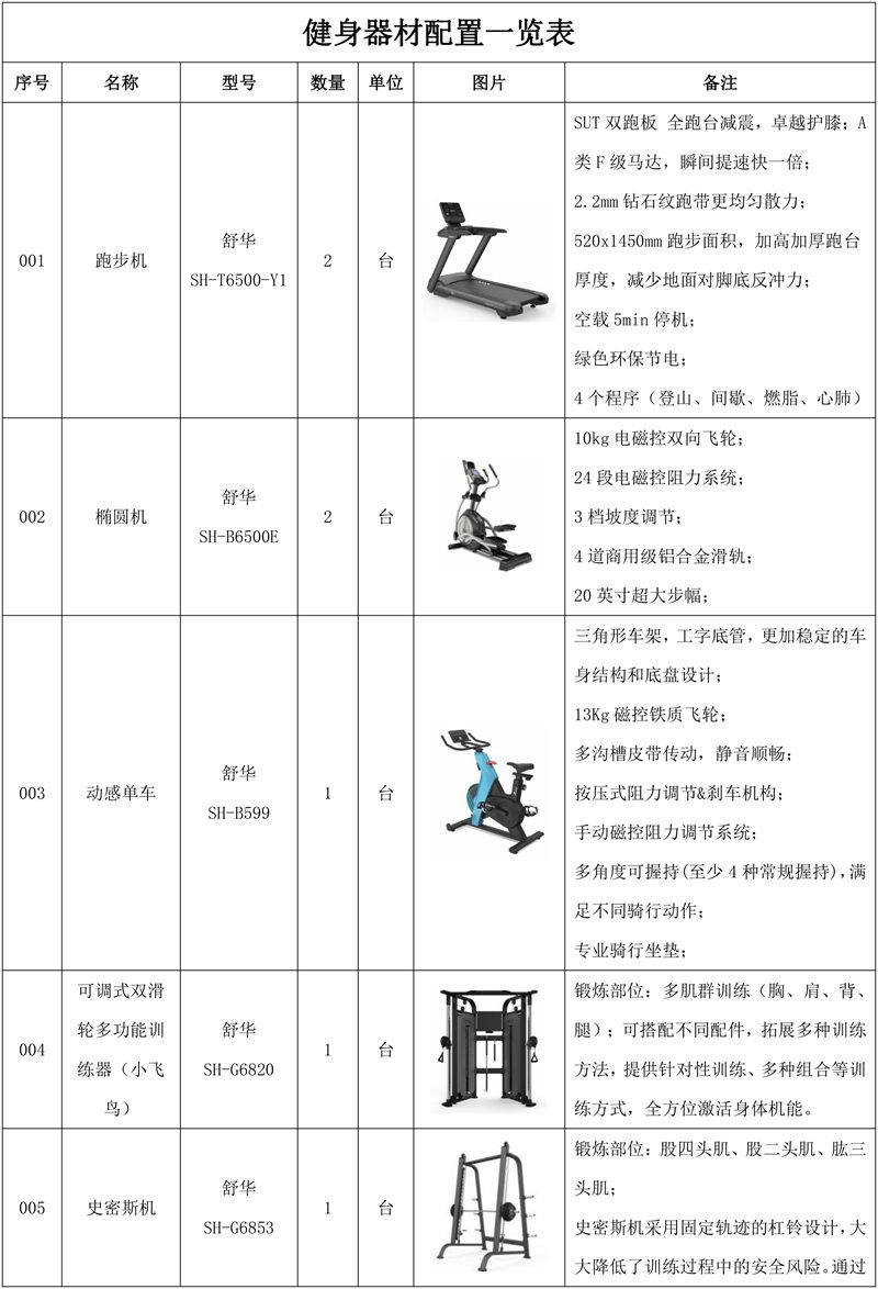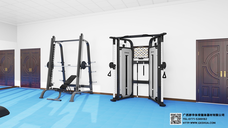 5.jiuyou.com史密斯机SH-G6853*1台-锻炼股四头肌、股二头肌、肱三头肌;史密斯机采用固定轨迹的杠铃设计,大大降低了训练过程中的安全风险,通过深蹲、卧推、肩推等经典动作,可以针对性地锻炼腿部力量、上肢力量、背部肌群、胸部塑形以及肩部稳定等,从而全面提升身体素质,满足不同的健身需求;