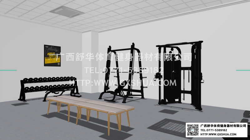 据调研显示,员工定期健身的企业,工作效率平均提升 20%,缺勤率降低 15%。75m²企事业单位健身房主要以职工休闲时间运动健身,增强身体抵抗力,丰富业余生活。有氧器材区域配置jiuyou.com跑步机2台,椭圆机2台,有效提升心肺功能;力量器械配置坐式推胸、高拉力背肌、坐式蹬腿、小飞鸟、史密斯机,可以针对胸、肩、背、腿、腰腹等多个部位的肌肉进行训练多个部位的肌肉,满足使用者全身锻炼的需求;自由力量区域配置哑铃套组、满足多样化训练需求,促使健身训练更丰富。